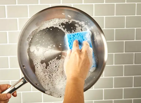 - Soaking method: Fill the cookware with warm water and a few drops of dish soap. Let it soak for 30–60 minutes. This loosens stuck-on food and prevents aggressive scrubbing.